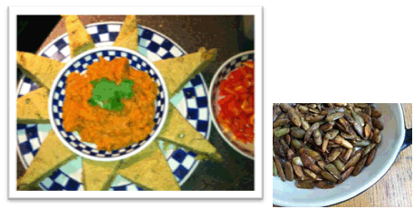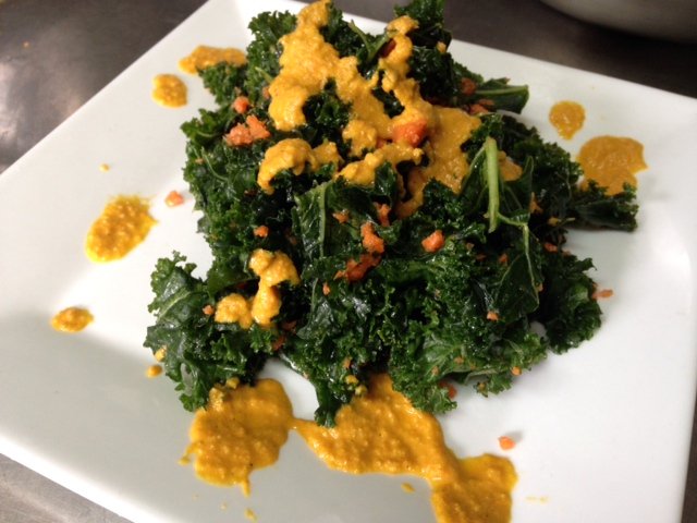 KALE SALAD: Live/Raw Tropical Kale Salad - marinated kale topped with cucumber, sunflower and pomegranate seeds with mango-ginger cream 5 points per quart