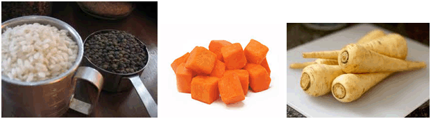 STEW DISH: Bombay stew- Red lentil- jasmine rice stew simmered with sweet corn, sweet potatoes, parsnips, carrots and fresh cilantro infused with garlic and Indian spices 4 points per pint F