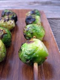 roasted Brussel sprouts skewered and served shish-k-bob style with