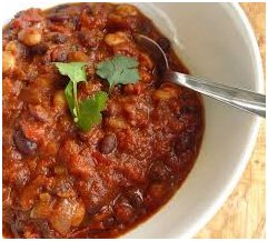 STEW DISH: Mexican Chipotle Lentil Chili – hearty brown lentil chili with sweet garnet yams, carrots, sweet corn, onions and fresh cilantro 5 points per pint F